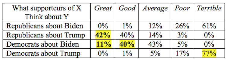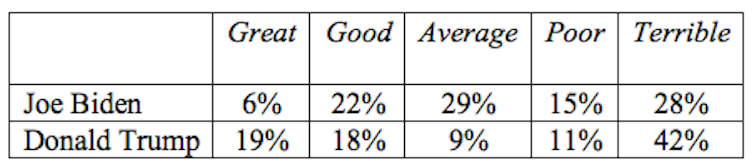 In a Pew Research Center poll from June 2020, people assessed the two presidential candidates in the following way: