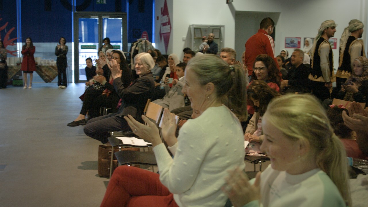 To bring the story to life, six young girls performed a traditional Samaḥ dance, most often performed in Old Aleppo. A group of young men performed Dabkah dance, which is publicly practised on joyful occasions in many parts in Syria, and were joined by Dr Alsalloum.